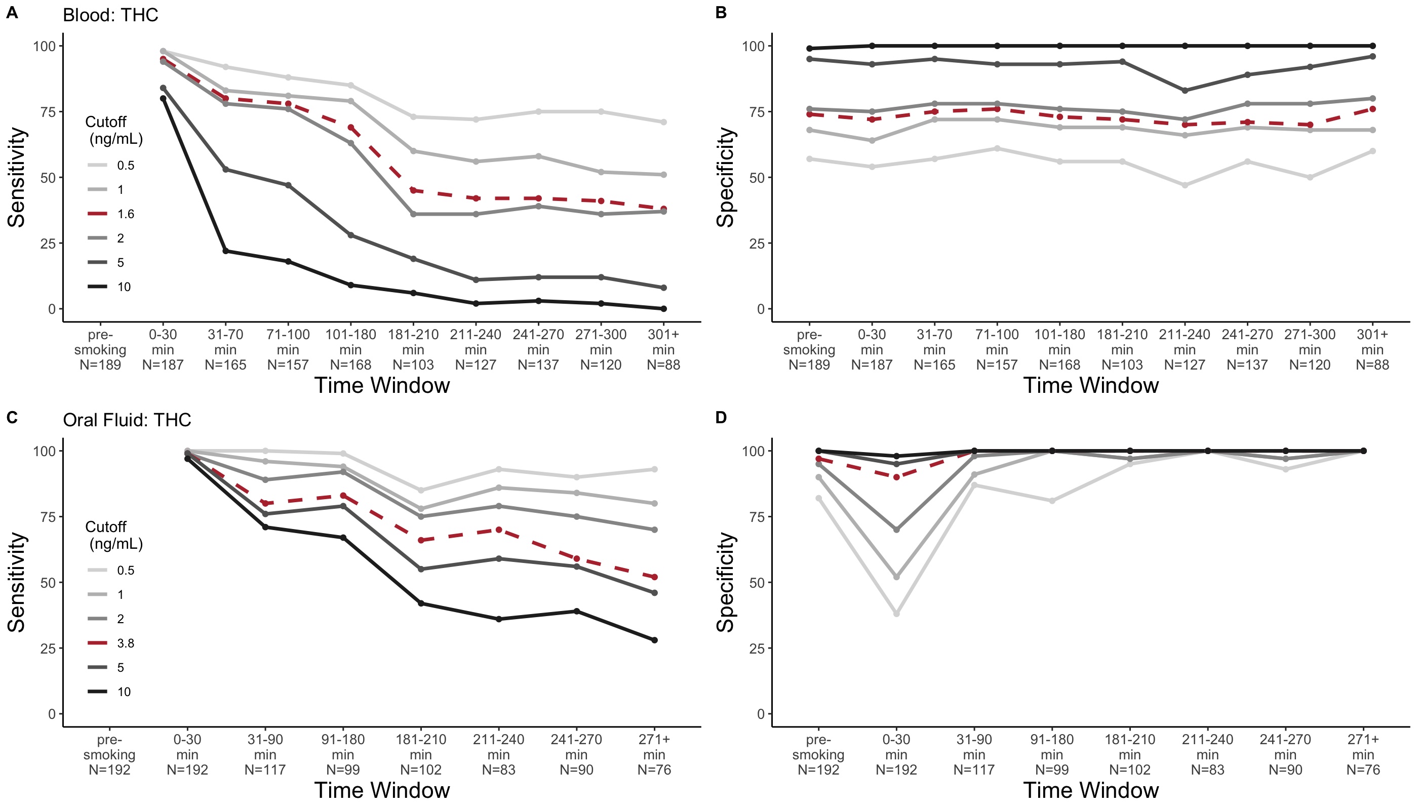 Results from: Hubbard et al (2021) Biomarkers of Recent Cannabis Use in Blood, Oral Fluid and Breath link